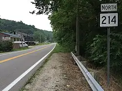 West Virginia Route 214 is a north–south state highway located in the western portion of the U.S. state of West Virginia. Although the route maintains an east–west routing for most of its length, the route is signed as north–south. The southern terminus of the route is at West Virginia Route 3 southeast of Griffithsville. The northern terminus is at an interchange with U.S. Route 119 south of South Charleston, where the roadway continues northward as West Virginia Route 601.