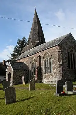 West Worlington is a small village and former civil and ecclesiastical parish, now in the civil parish of East Worlington, in the North Devon district, in the county of Devon, England. It is situated about 2 miles west of Witheridge. In 1881 the parish had a population of 193.[1] In the parish is the historic estate, formerly a separate parish,[2] of Affeton, the ancient seat of the Stucley family. Through the parish flows the Little Dart River. The parish church is dedicated to St Mary. On 25 March 1885 the civil parish was merged with East Worlington,[3] in 1919 it was merged into the ecclesiastical parish of East Worlington, the parish church of which is also dedicated to St Mary, to form a single ecclesiastical parish.[4]