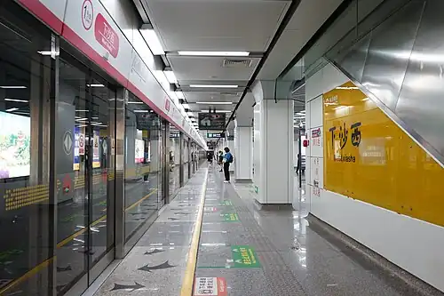 West Xiasha (Chinese: 下沙西) is a station on Line 1 of the Hangzhou Metro in China.[1][2] It was opened in November 2012, together with the rest of the stations on Line 1. It is located in the Qiantang District of Hangzhou.