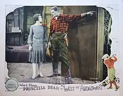 West of Broadway is a lost[1] 1926 American silent romantic comedy Western film directed by Robert Thornby and starring Priscilla Dean. It was released through Producers Distributing Corporation.[2] The film was based on the short story "New York West" by Wallace Smith and was adapted for the screen by Harold Shumate.[3]