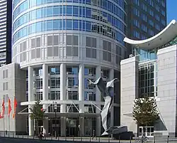 A sculpture by Claes Oldenburg and Coosje van Bruggen, called Inverted Collar and Tie is set up in front of the entrance.