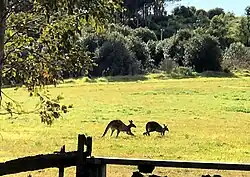 The park's main recreational points include Pimelea, Sugarloaf Ridge, The Dairy and Plough and Harrow picnic areas, all of which have shelters, playgrounds and free barbeques, in addition to large parking spaces. There exists a walking track called the Spotted Gum Trail, which is 3 km in length, that loops around Plough and Harrow within the native bushland, thereby allowing walkers to encounter kangaroos and wallabies, in addition to birdwatching.[12] Every entrance to the recreation spots contains prominent planting accompanied by a large signage to indicate access. Access to the park is through Cowpasture Road, Elizabeth Drive and The Horsley Drive.[4]