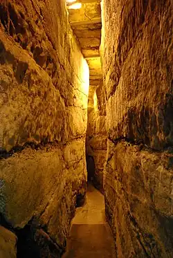 The tunnel exposes 300 m of the wall's total 445 m, revealing the construction methods and the various activities in the vicinity of the Temple Mount.[1] The excavations included many archaeological finds along the way, including discoveries from the Herodian period (streets, monumental masonry), sections of a reconstruction of the Western Wall dating to the Umayyad period, and various structures dating to the Ayyubid, Mamluke and Hasmonean periods constructed to support buildings in the vicinity of the Temple Mount.