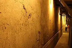 Originally, visitors had to retrace their steps back to the entrance. A connection to the Hasmonean water system was made, but this still required them to make a U-turn once they had reached the Struthion Pool. Digging an alternative exit from the tunnel was proposed, but initially rejected on the grounds that any exit would be seen as an attempt by the Jewish authorities to stake a claim to ownership of the nearby land—part of the Muslim Quarter of the city. In 1996, however, Benjamin Netanyahu authorized the creation of an exit leading to the Via Dolorosa, underneath the Ummariya madrasah. Over the subsequent few weeks, 80 people were killed as a result of riots against the creation of the exit.[12] A modern wall divides the Struthion pool into two parts, preventing access between them. One side is visible from the western wall tunnels, and the other area is accessible from the Convent of the Sisters of Zion. Since then, it has been possible for large numbers of tourists to enter the tunnel's southern entrance near the Western Wall, walk the tunnel's length with a tour guide, and exit from the northern end. This exit is only open during daytime, owing to continued security concerns.