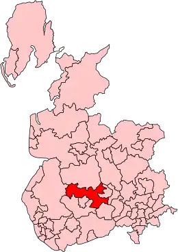 The Redistribution of Seats Act 1885 divided the existing constituency of South East Lancashire into eight single-member seats. The new seat of South-East Lancashire, Westhoughton Division comprised an area surrounding, but not including, the County Borough of Bolton .[ 1] It consisted of the towns of Aspull , Blackrod , Horwich , Little Lever , and Westhoughton, and the surrounding townships of Anglezarke , Bradshaw , Breightmet , Darcy Lever , Edgworth , Entwistle , Great Lever , Harwood , Heaton , Longworth , Lostock , Middle Hulton , Over Hulton , Quarlton and Rivington , plus Turton Urban District , and the parts of Rumworth , Sharples and Tonge with Haulgh outside the Parliamentary Borough of Bolton .[ 2] [ 3] [ 4]