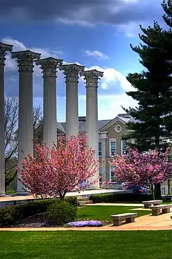 The Westminster College Historic District was added to the National Register of Historic Places in 1982.[19] It encompasses nine contributing buildings and six contributing objects. They include the Hall of Science (1900–1901), Steam Heating Plant (1919–1920), The Columns ("Old" Westminster Hall) (1853–1854), Westminster Hall (1909–1911), the Gymnasium (1928), Swope Chapel Memorial (1967), Washington West House (1907), Re-Union Hall (1903), and Reeves Library (1950–1951).[20]
