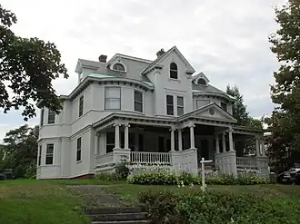 Westminster Terrace is geographically sited on a terrace overlooking the mouth of the Saxtons River, where it empties into the Connecticut River just below Bellows Falls, Vermont. The terrace is separated from the surrounding roads and properties (principally Westmminster Road, a major north-south artery) by steep terrain. The southernmost properties located on the terrace are across the town line in Westminster. The northern end of the district abuts the Bellows Falls Neighborhood Historic District. The terrace is occupied by 24 primary residential structures and a number of outbuildings. Most of these are large 2-1/2 story wood frame buildings in architectural styles popular in the late 19th and early 20th centuries, while there are also a number of mid-20th-century single-story ranch houses, which exemplify the shift in character of the area over time.[2]