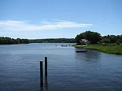 The Westport River lies between Narragansett Bay and Buzzards Bay in Westport, Massachusetts.
