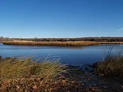 The larger East Branch is roughly 11.5 miles (18.5 km) long,[1] rising at the town line of Westport and Dartmouth at Lake Noquochoke, which is fed mostly by the Copicut and Shingle Island rivers. After a short length the river meets the Bread and Cheese Brook before reaching the Head of Westport village, where the river widens and deepens. From here the river continues southward, being fed by several brooks before an initial widening to between 100-400 yards at Widows Point. From Widows Point, the river flows due southward, crossing under the Hix Bridge before passing Gull Rock and then widening at Cadman's Neck to approximately a half mile wide. The river flows southward, with several larger islands dotting the path, before meeting the Horseneck Channel (which in turn leads to The Let) at Westport Point. The East Branch then flows under the Normand Edward Fontaine Bridge and into Westport Harbor.