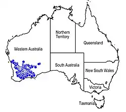 It is found in Beard's Eremaean and South-West Provinces.[4]