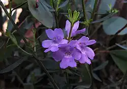 Westringia crassifolia, commonly known as whipstick westringia,[2] is a flowering plant in the family Lamiaceae and is endemic to Victoria, Australia. It is a rare shrub with narrow leaves and lavender-purple or pink flowers in spring.