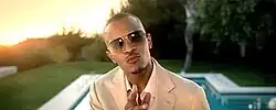 The music video was filmed in Malibu, Los Angeles, California, and was directed by Dave Meyers. Reagan Gomez-Preston plays T.I.'s love interest.[16] Cameos include Jackie Long, Lil Duval, Jim Jonsin, DJ Toomp and T.I.'s wife Tameka Cottle. The video starts with a girl working at a fast food restaurant. When T.I. comes into the restaurant, after ordering hot wings, he hands the girl a folded up paper with his number on it.[3] She then calls him and T.I. invites her to his house. The video then shows her living the high life, with T.I. treating her to private jet rides, fancy dinners, and buying her many expensive gifts, such as a new car. The video also show clips of her living her normal life with her boyfriend. Right before the end of the video, it shows the release date of T.I.'s new album Paper Trail while T.I. is on the red carpet with his girl. At the end it is revealed it is all merely a fantasy sequence the girl was having, and T.I. had only handed the girl a hundred dollar bill, not his number.[3] The concept of the video is similar to the one for Jay-Z's single "Excuse Me Miss".