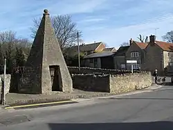 The village lock-up, built in 1834, is a stone building in the shape of a hexagonal pyramid,[8] near the edge of the former quarry. It has a heavy padlocked door and the floor space is about 6 feet (1.8 m) square with a headroom of about 8 feet (2.4 m). In the 19th century it was used to lock up drunks overnight before sending them to the Oxford court. More recently it has been opened every May Day. For a small charge visitors can be locked up for five minutes or so, and given a certificate to prove it.