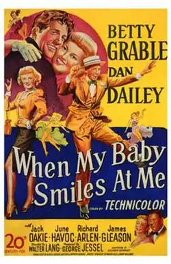 When My Baby Smiles at Me is a 1948 American musical film directed by Walter Lang and starring Betty Grable and Dan Dailey. Released by 20th Century Fox, it is the third film based on the popular 1927 Broadway play Burlesque, the others being The Dance of Life (1929) and Swing High, Swing Low (1937). When My Baby Smiles at Me is the first (and to date, the only) full Technicolor film version of that play; The Dance of Life had several Technicolor sequences, but they are no longer extant.