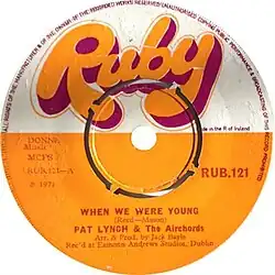 "When We Were Young" was a number one hit single by the Irish showband The Airchords, featuring Pat Lynch on lead vocals.[1] Written by Barry Mason and Les Reed,[2] it reached No. 1 on the Irish Singles Chart on 10 April 1971. The song remained at the top of the charts for just the one week, but was to return to the No. 1 position on 8 May of that same year, this time for a period of four weeks. Lynch and the Airchords had already broken up before the song was released.[3] The song became a stadium anthem for Cork Hibernians F.C.[4]