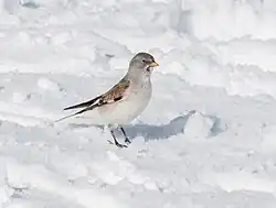 The white-winged snowfinch (Montifringilla nivalis), or snowfinch, is a small passerine bird. Despite its name, it is a sparrow rather than a true finch.