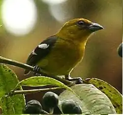 The white-winged tanager (Piranga leucoptera) is a medium-sized American songbird in the family Cardinalidae, the cardinals or cardinal grosbeaks. It is found from Mexico, through Central America, across northern South America and as far south as Bolivia.[2][3]