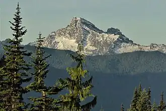 White Chuck Mountain, or native name Hi Khaed,[3] is a 6,989 ft (2,130 m) summit near the western edge of the North Cascades, in Snohomish County of Washington state. It is located southeast of Darrington, Washington, east of the Mountain Loop Highway, and northwest of Glacier Peak, which is one of the Cascade stratovolcanoes. It is situated at the confluence of the White Chuck River and the Sauk River on land administered by the Mount Baker-Snoqualmie National Forest. The mountain is named for the White Chuck River, which "chuck" in Chinook Jargon means "water".[4] The nearest higher neighbor is Mount Pugh, 4.9 miles (7.9 km) to the south-southeast.[1]