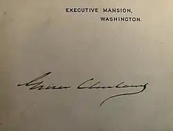 President Grover Cleveland distinguished cards signed during his two non-consecutive terms in office by adding the year under his signature during his second term. President Benjamin Harrison preferred to respond to autograph requests by signing a card with an engraved view of the White House. Executive Mansion cards signed by Harrison, therefore, are somewhat scarce.