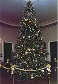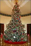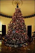 The White House Christmas Tree, also known as the Blue Room Christmas Tree, is the official indoor Christmas tree at the residence of the president of the United States, the White House. The first indoor Christmas tree was installed in the White House sometime in the 19th century (there are varying claims as to the exact year) and since 1961 the tree has had a themed motif at the discretion of the First Lady of the United States.