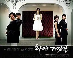 White Lie[1] (Korean: 하얀 거짓말; RR: Hayan geojinmal) is a South Korean television series starring Shin Eun-kyung, Kim Hae-sook, Kim Yu-seok, Kim Tae-hyun and Im Ji-eun. The morning daily drama aired on MBC on Mondays to Fridays at 7:50 a.m. from November 10, 2008, to July 17, 2009, for 179 episodes.