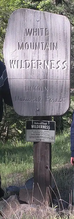 The White Mountain Wilderness was first established as a primitive area by the United States Congress in 1933. After the passage of Public Law 88-577, also known as The Wilderness Act, in September 1964, the primitive area was re-designated as the White Mountains Wilderness Area and entered into the newly created National Wilderness Preservation System. Originally established at 28,118 acres, Public Law 96-550, the New Mexico Wilderness Act, added an additional 16,860 acres to the area in December 1980, increasing the total size to 46,963 acres.[1] The Wilderness Area is administered by the United States Forest Service as part of the Lincoln National Forest, headquartered in Alamogordo, New Mexico. Located in the Smokey Bear Ranger District of the Lincoln, the Wilderness is managed from the District Ranger Office in Ruidoso, New Mexico.[2]