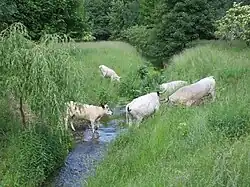 The White Park is a modern British breed of cattle. It was established in 1973 to include several herds or populations of colour-pointed white cattle – white-coated, with points of either red or black on the ears and feet.[5] Such cattle have a long history in the British Isles, and the origins of some herds go back to the Middle Ages.[6][7][8][9][10]