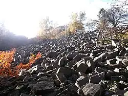 The White Wall[1] (German: Weiße Mauer) in the Taunus is a quartzite field on the Altkönig that was formed in the ice age as a result of frost weathering. It lies at a maximum elevation of 634 m above sea level (NHN)[2] near Oberursel in the Hessian county of Hochtaunuskreis in Germany.