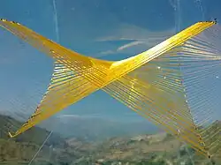 Whitney umbrella made with a single string inside a plastic cube