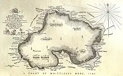 According to the traveller Celia Fiennes, who saw it in 1697, the mere was "3 mile broad and six mile long. In the midst is a little island where a great store of Wildfowle breed.... The ground is all wett and marshy but there are severall little Channells runs into it which by boats people go up to this place; when you enter the mouth of the Mer it looks formidable and its often very dangerous by reason of sudden winds that will rise like Hurricanes...."[2]