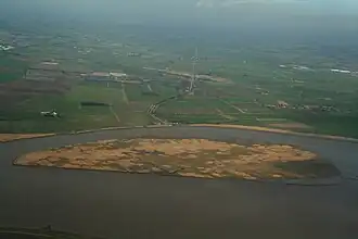 Whitton Island is an ait (or eyot), formed by the deposit of sands and gravels washed down by the river, which accumulate over a period of time, and become consolidated by the vegetation that colonises them.[2] Only in recent years has the island emerged sufficiently from the mud and sand bank known as Whitton Sand to be mapped by the Ordnance Survey as a new feature.[3] Whitton Sands forms a part of the Humber Wildfowl Refuge.[4]
