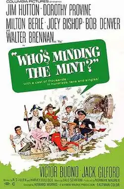 Who's Minding the Mint? is a 1967 American crime comedy film directed by Howard Morris and starring Jim Hutton, Dorothy Provine, Walter Brennan and Milton Berle. The screenplay, concerning a group of individuals who break into a United States Treasury building to print currency, was written by R. S. Allen and Harvey Bullock. The movie was produced by Norman Maurer for Columbia Pictures and is Morris’ directorial debut. The supporting cast features Joey Bishop and Bob Denver. It was the last leading role for Jim Hutton.[1]