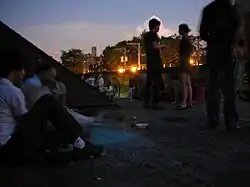 Beginning in the 1960s, Wicker Park began to change radically. Construction of the Kennedy Expressway, completed in 1960, had displaced many residents and torn holes in the sustaining network of Polish-American churches, settlement houses, and neighborhood groups.[15] Additionally Puerto Ricans and other Latinos displaced by urban renewal in Old Town and Lincoln Park began moving in. In 1960 Latinos comprised less than 1 percent of West Town's population, but by 1970 that number was up to 39 percent.[15] Split from the Lincoln Park neighborhood by the Chicago River and then the Kennedy Expressway in the late 1950s and 60s, it contained the second largest concentration of Puerto Ricans in Chicago. It was the original home to the largest Latino gang at the time, the Latin Kings.