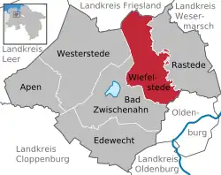 Wiefelstede (German pronunciation: [viːfl̩ˈʃteːdə]; Low German: Wiefelstä) is a municipality in the Ammerland district, in Lower Saxony, Germany. It is situated approximately 15 km northwest of Oldenburg.