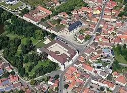 Wiesentheid Castle (German: Schloss Wiesentheid) is a listed building in the market town of Wiesentheid, Kitzingen, in Lower Franconia, Bavaria, Germany. The complex includes the Baroque town centre with the parish church and the eponymous castle of the Counts of Schönborn.
