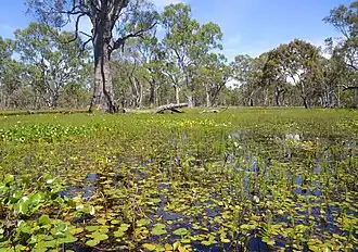The nature reserve comprises a large low-lying area of ephemeral wetland (Wiesners Swamp) and small areas of gently sloping land above regular flood level on the north-western, south-western and north-eastern corners.[2] Wiesners Swamp lies in a depression on the Billabong Creek floodplain, and is located in the headwaters of Simmons Creek, which flows into Billabong Creek.[2]