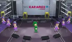 Wii Karaoke U by Joysound (also known as Karaoke Joysound for Wii U) is a karaoke video game developed by Xing and published by Nintendo for the Wii U.[1] The game is a successor to the Wii game Karaoke Joysound, licensing the same Joysound online song library. The game was free to download but required the purchase of a karaoke ticket to sing songs, as well as an internet connection.