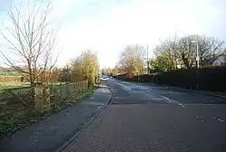 A drift existed on the route, which connected St John's Grange Farm to Madingley Road, and a handful of agricultural cottages (dating from 1905) and bungalows (1926) pre-date the road construction. The local historian Philomena Guillebaud notes that the bungalows are the only working-class housing to be built on land belonging to St John's College in west Cambridge, other than those housing the college's own agricultural workers.[2] St John's College sold 10 acres (4.0 ha) of land now lying on the west of the road to Emmanuel College in 1907 for sports grounds, and a sports pavilion and adjoining groundsman's house and stable were constructed in 1910 for Emmanuel.[3]
