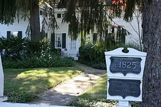 The Wilbur Cahoon House is one of the oldest homes in Lorain County, Ohio, United States.[2] The house is 80 feet (24 m) long with 12 rooms, situated overlooking French Creek. Wilbur Cahoon arrived in Avon in 1814 from Herkimer County, New York with his wife, Priscilla and family;[2] he was Avon's first settler and an early industrialist.[3] Cahoon purchased 800 acres (320 ha) through a trade of 100 acres (40 ha) in New York. His new land was covered by a forest,[2] and he and his family constructed a log cabin as a temporary shelter. In the following year, he began to build a sawmill nearby along French Creek, and in 1818 established a gristmill. The log cabin was no longer the Cahoon family home after 1826, when the present house was erected.[3] Later in life, Cahoon entered into local public service: he served as Justice of the Peace for Avon, Sheffield and Dover Townships,[2] as well as holding offices such as overseer of the poor, elections judge, and constable.[3]