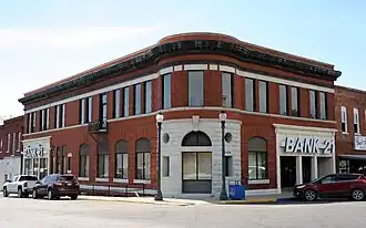 Wilcoxson and Company Bank, also known as the Farmer's Bank of Carrollton and Farmer's Bank of Bogard, is a historic bank building located at Carrollton, Carroll County, Missouri. It was built in 1904, and consists of two two-story buildings, a corner building and a building that wraps around it on two sides. The buildings are visually tied together by a denticulated projecting cornice and stone coping on the tall roof parapet.[2]: 2