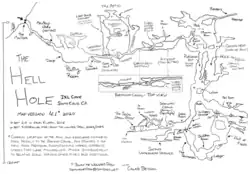 This cave was known about in the local spelunking community since at least 1953,[4] but gained some further local notoriety after two spelunkers needed rescuing from the cave in January 1990;[7] prompting security guards to limit access to the Hell Hole along with other caves on Grey Whale Ranch.[6] Around this time, visiting the cave was considered to be a rite of passage for students at the nearby UC Santa Cruz, however, many visitors did damage the cave and leave litter behind.[5] In spite of the best efforts from early explorers to keep the location of the cave a secret,[4][5] the location of the Hell Hole is easily found online, which has made it even easier for visitors to visit the cave; however, inexperienced cavers are actively discouraged from visiting the Hell Hole, due to the many risks involved.[8]