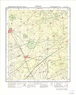 Under Pahar Singh of Faridkot State, the jungles that surrounded Faridkot were deforested to clear the land for development.[9] During the Green Revolution, large tracts of jungles were cut-down in the state to make room for agriculture and forested areas were also cleared for road infrastructure and residential homes.[8] Various NGOs are working towards afforestation and reforestation of the state by launching educational drives, planting saplings, working towards regulatory changes, and pressuring organisations to follow environmental laws.[8] One NGO, EcoSikh, has planted over 100 forests, composed of native plant species, in the state using the Japanese Miyawaki methodology that are named 'Guru Nanak Sacred Forests'.[10][11][12] Native plant species are facing the risk of extirpation from the state but planting mini-forests throughout the land can help prevent this from occurring.[13] Prior to the Green Revolution, Butea monosperma (known as 'dhak' in Punjabi) trees were found in abundance in the state.[14]