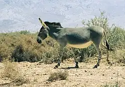 The Arabian oryx disappeared from the southern deserts of the Levant and the Syrian Desert in the 19th century due to intensive hunting by Bedouins and recreational hunters, and by the 1930s the animal had disappeared from Jordan and was listed as globally endangered. The Arabian oryx was reintroduced to Israel in 1978, when a breeding program was established. The animals bred successfully in captivity until they reached 80 individuals in 1996, some of which were released in the Arabah Valley and the Negev. They subsequently reproduced naturally, reaching a population of approximately 100 by 2004.[119] In 2009, the oryxes were repatriated to Jordan, with 20 animals being released in Wadi Rum. These animals were transported from Abu Dhabi in the United Arab Emirates. In Syria, a few herds of these animals reside in the fenced Tallila Reserve in a semi-wild state.[120] The akhdar, or Asian wild donkey, inhabited the Syrian and Palestinian deserts in vast numbers for millennia. By 1927, the species had been completely extirpated from the region as a consequence of hunting, and two distinct breeds were present in the Levant, the Syrian breed, which is now extinct, and the Persian breed, which was reintroduced to Israel during the 1960s and 1980s. They were released in the Negev Desert in southern Israel, where more than 150 now live, and another herd was released in the Arabah Valley,[121] and the animals have been reintroduced to Syria and Jordan. The Israeli environmental authorities have introduced the Maha Abu Adas and the African wild donkey to the Hai Bar Yotvata Desert Reserve, which specializes in breeding threatened desert wildlife, especially those mentioned in the Torah. These two species are likely to be among the animals mentioned in the Torah, which are said to have inhabited the land of Palestine. However, neither of these two species have been released into the wild until it is definitively confirmed that they are indeed among the mammals that inhabited the area in the past.[122] Other mammals that became extinct in the Levant and have yet to be reintroduced include the hippopotamus, Asiatic cheetah,[123]red deer,[124] and Barbary sheep.