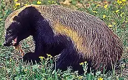 In the Levant, the carnivores are represented by six families: Mustelidae (mustelids), Herpestidae (mongooses), Hyaenidae (hyenas), Canidae (canids or dogs), Phocidae (earless seals) and Felidae (felid or cats). The marten still inhabits the protected virgin areas of the Levant, some in close proximity to villages, towns, and farms.[35] Its habit of feasting on poultry and cultivated fruits and vegetables has caused it much trouble with farmers, and its valuable fur has led to it being persecuted and hunted in many areas.[36] Another familiar Levantine Mustelidae, the veined weasel or veined horse-mouse, is still common, especially in the highlands and mountains, and to a lesser extent in the coastal plain of Palestine, and is the most common Levantine sable.[37] Poultry farmers view them with disdain due to their sporadic thefts, whereas farmers regard them as beneficial as they consume rodents that otherwise would destroy crops.[38] The Eurasian otter is widely distributed throughout Levantine canals and waterways, particularly those that are not heavily polluted. Some of the most notable locations where they can still be observed include Swamp Amik in Lebanon, Lake Hula in Israel, Lake Qaraoun, Orontes River, Zarqa River, and the Jordan River. They are the largest freshwater mammals in the region.[39] The most conspicuous species in the Levant are the lesser weasel, the Eurasian badger, and the honey badger or skunk. The first species colonizes forests, meadows, and areas adjacent to villages, and its presence is beneficial as it kills mice. The second species is common in open deciduous forests and some coastal areas, while the third species is mainly a desert animals which can are found in the south Levant from the Negev Desert to Jerusalem and surrounding areas. They are known to exhibit a ferocity that allows them to kill even the most venomous snakes and to resist attacks by larger predators.[40]