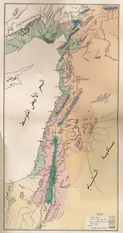 The West Coastal Range is located in the White River region near Kahramanmaraş. Situated between the Taurus and Amanus mountains. Its northernmost point is at the confluence of these two mountain ranges. The Amanous Range extends to the Orontes River gully in the Gulf of Suwaidiya, with a maximum elevation of 2,240 meters. A second series, complementary to the first, extends from the mouth of the Orontes River to the southern Nahr al-Kabir. This series is known as the Nusairiya Mountains. The Akkar Plain serves to differentiate the Nusairiya Mountains from their southern extension within Mount Lebanon, in this latter region, the highest mountains of the Levant are situated and reach a peak height of 3088 meters in Qurnat as Sawda'. Proceeding in a southerly direction, the mountains begin to recede from the sea and gradually diminish in height. The highest peak in the Galilee (Jabal al-Jarmaq) reaches an altitude of 1,208 meters. The Nablus Mountains originate from Mount Carmel in Haifa and extend until they merge with the Hebron Mountains in the south. The hilly and mountainous areas continue to Ras Muhammad in the southernmost part of Sinai. Mount Ebal is the highest peak in the Nablus Mountains (981 m), while the Hebron Mountains reach their highest point at Halhul (1020 m). The length of this mountain range, extending from Kahramanmaraş to Ras Muhammad, exceeds 1,100 kilometers.[2]