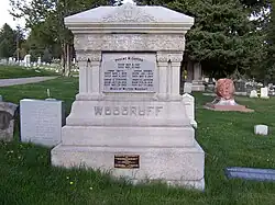 Woodruff died in San Francisco, California, on September 2, 1898, after a failed bladder surgery.[136] He was succeeded as church president by his son-in-law, Lorenzo Snow. Woodruff was buried at the Salt Lake City Cemetery.[137]