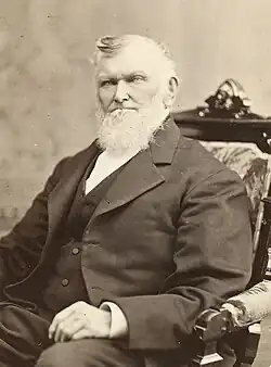 Woodruff was the founding director of Zion's Cooperative Savings Bank in August 1871. He was also on the board of directors for ZCMI. When Brigham Young set up United Order communities in 1874, Woodruff helped organize United Orders in Provo, Pleasant Grove, American Fork, and Lehi, but did not enroll in the communalist program himself. Most United Order programs stopped functioning after a few months. Woodruff started keeping bees in 1870, and founded a society for beekeepers in Utah territory that year.[86] He and Phebe moved to a smaller house in 1871, since their children were no longer living at home.[87] Woodruff's other wives still continued to bear children and needed larger places to live. Woodruff's wife Sarah and his son's family moved to Randolph, Utah, in 1871, and he built a house for Sarah in 1872.[88] Woodruff bought new mowers and rakes, which he used at both Randolph farm and his Salt Lake City farm in 1873.[86] He built a house for Delight in 1876 in Salt Lake City.[88] He helped his older sons, Wilford Jr. and David Patten, with their own farming businesses. Phebe was still Woodruff's most visible wife, appearing with him in public.[87]