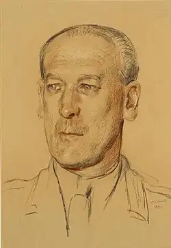 Lindsell was promoted to major-general in command of Administration for Southern Command, 1938–1939 and was appointed the quartermaster-general on mobilisation of the British Expeditionary Force in France and Belgium, 1939–1940, until the evacuation from Dunkirk.[8] After Dunkirk he became quartermaster-general of Home Forces and set about re-building the army from Kneller Hall in Twickenham. After a year he became senior military advisor to the Ministry of Supply under Sir Andrew Duncan and Lord Beaverbrook. In less than a year the army had thirteen fully equipped and trained divisions to repel a German invasion. In 1942 he became one of General Bernard Montgomery's team to revitalise the Eighth Army as lieutenant-general in charge of administration in GHQ Middle East.[7] In a broadcast concerning the capture of Tripoli the British Secretary for War, Sir P.J. Grigg, said that much of the credit for the Eighth Army's phenomenal advance was due to the quartermaster-general's staff under Lt General Sir Wilfrid Lindsell.[2][6][7][9] During the Second World War he was mentioned in despatches on three more occasions.[2]