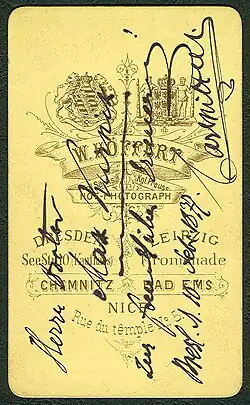 - ^ first mentioned in the name register of the Dresden Address Book of 1873, the title Court Photographer H.K.H. d. Kronprinzen Albert, (Online, SLUB).