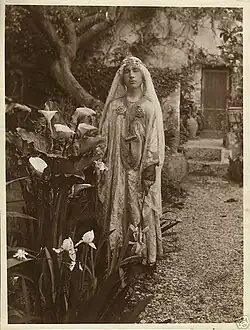 In a search for health, Gloeden travelled to Italy (1877–78), first staying in Naples and visiting Capri before moving on to Taormina in Sicily.[10] He lodged at the Hotel Vittoria before buying a house near San Domenico Convent (Chiesa di Sant'Agata (Taormina)).[11] Apart from the period 1915–18, during the First World War, when he was forced to leave Italy to avoid internment as an enemy alien, he remained in Taormina until his death in 1931. Gregory Woods, scholar of LGBT studies, credited von Gloeden with transformative powers: "Largely as a consequence of his photographs' popularity, the town became a tourist resort with good hotels."[12] Edward Chaney, an expert on the evolution of the Grand Tour and of Anglo-Italian cultural relations, described the town as attracting "male refugees from more repressive climates".[13]